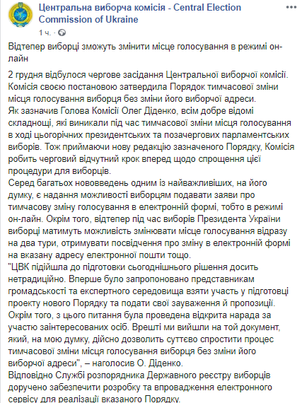 Скриншот: Facebook/Центральна виборча комісія