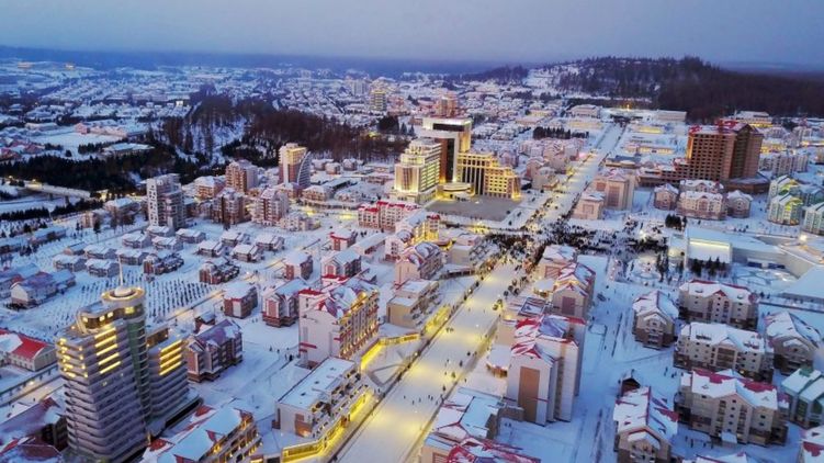В городе, который получил название Самджиён, за два года построены новые жилые дома, гостиницы, медицинские и культурные учреждения, горнолыжный курорт.