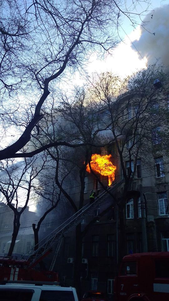 В связи с инцидентом мэрия Одессы отложила заседание исполнительного комитета, а мэр города лично прибыл посмотреть на пылающее здание. При этом в самом здании еще остаются студенты.