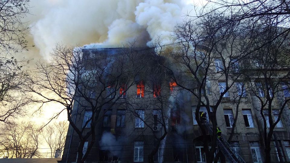 Площадь пожара в колледже экономики, права и гостинично-ресторанного бизнеса в Одессе увеличилась и составляет около 2000 кв. м. Кроме того, существует вероятность обрушения конструкций, утверждают в пресс-службе ГСЧС области.