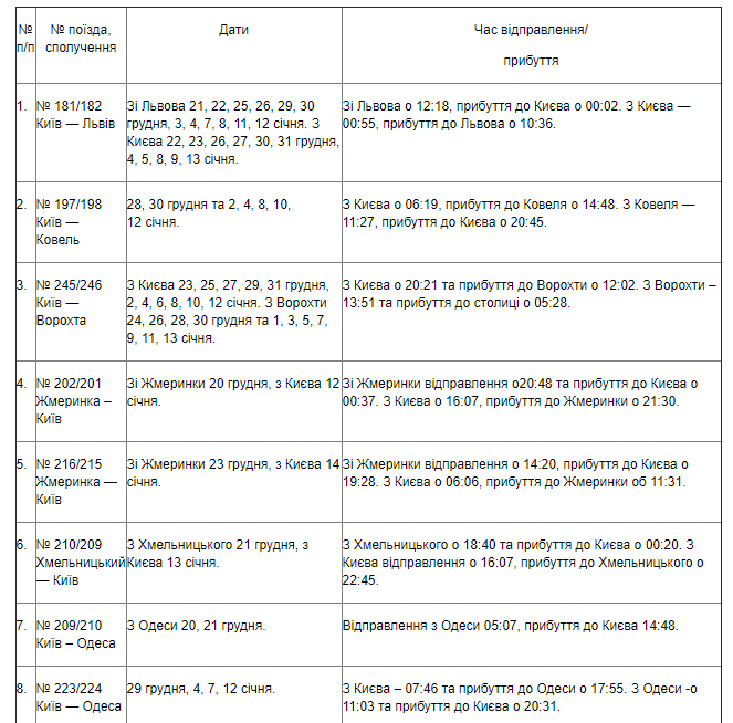 19 дополнительных поездов назначила Укрзализныця на период новогодних и рождественских праздников. Также для удобства пассажиров продлены маршруты еще семи поездов. Об этом сообщается на сайте ведомства.