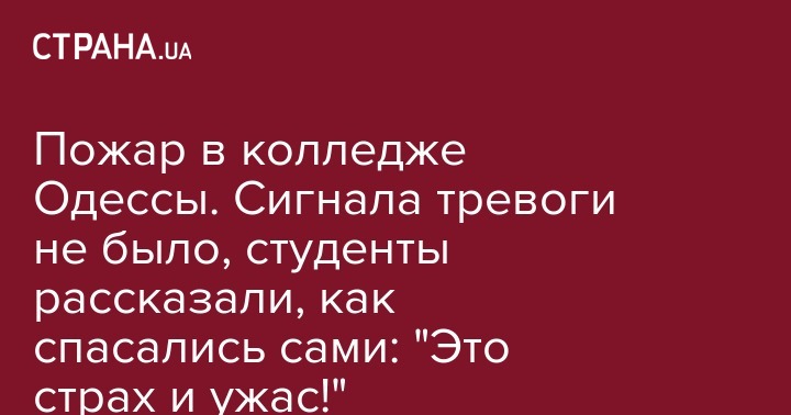 Во время пожара в Одесском колледже экономики, права и гостинично-ресторанного бизнеса не прозвучало тревожных сигналов или объявлений, многие ученики не сразу узнали о возгорании.