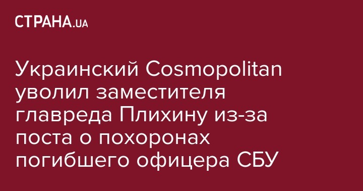 Украинский Cosmopolitan уволил заместителя главреда Плихину из-за поста о похоронах погибшего офицера СБУ