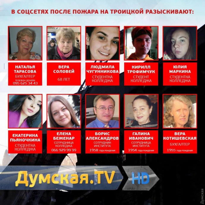 По словам начальника Главного управления Нацполиции в Одесской области Олега Беха на заседании областной комиссии по чрезвычайным ситуациям, в полиции также не могут установить информацию по еще одному человеку.