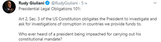Позже о уточнил, что речь идет об обязанностях президента, которые изложены в ст. 2, гл. 3 Конституции США. Речь идет о том, что он обязан запрашивать расследования случаев коррупции в странах, которым США предоставляют средства.