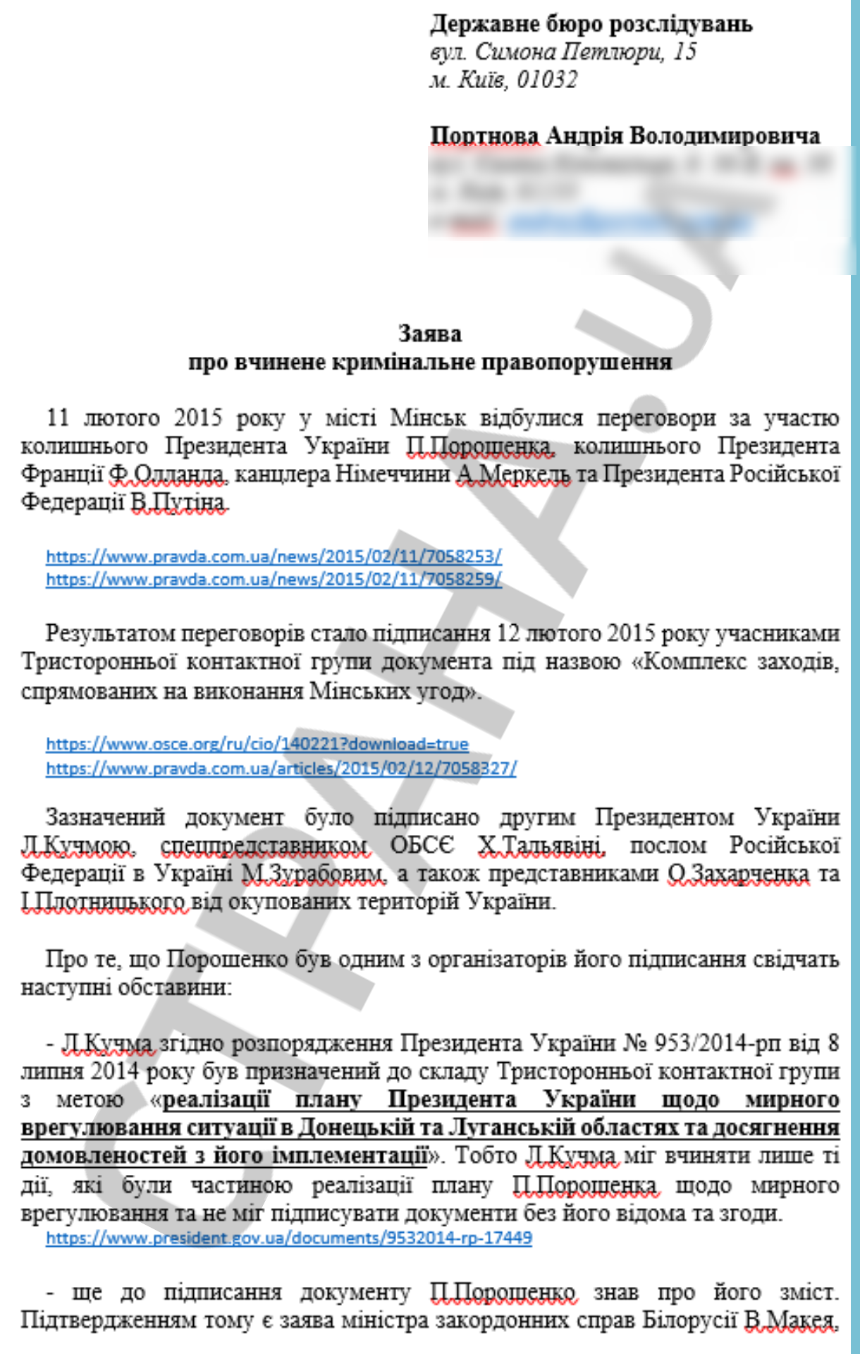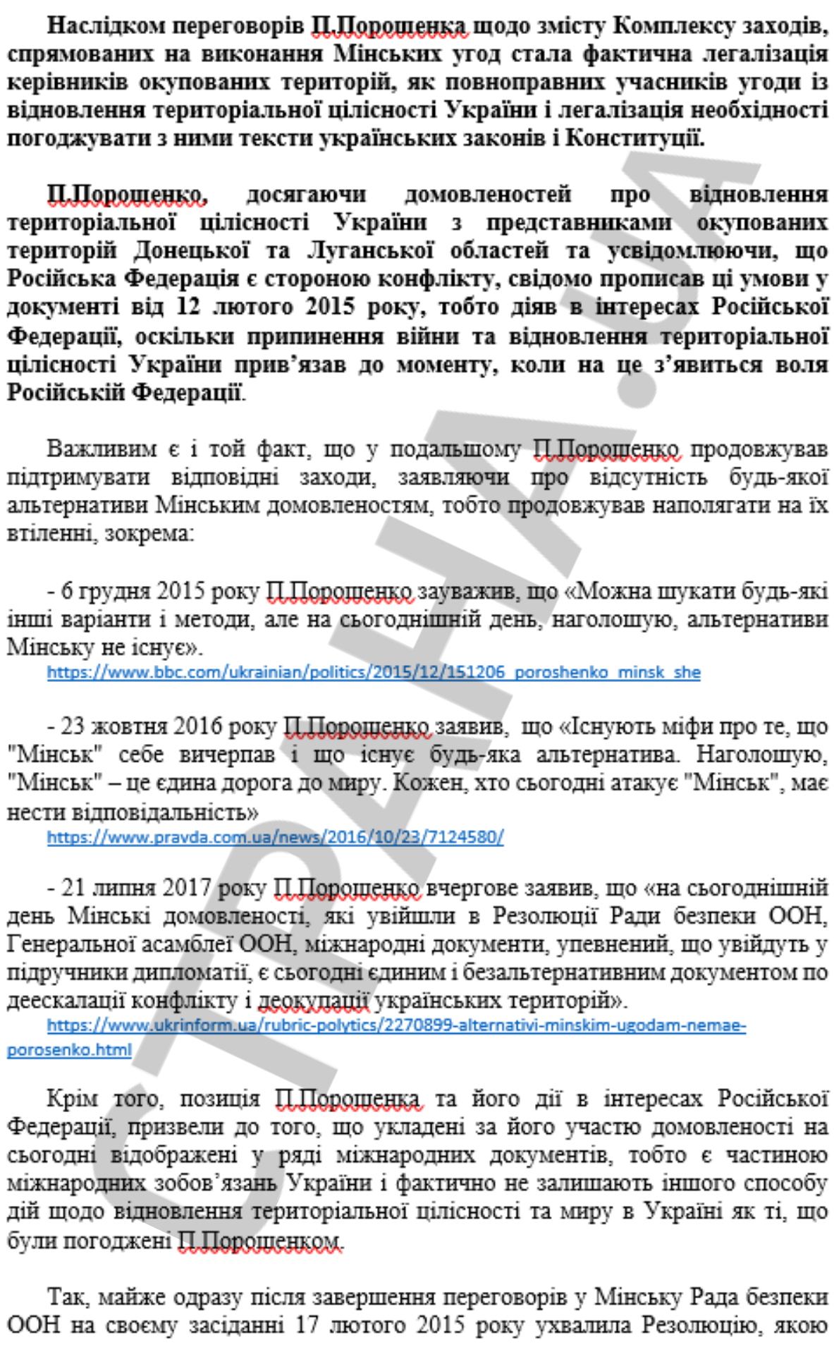 Это обвинения Порошенко в госизмене при подписании Минских соглашений в феврале 2015 года.