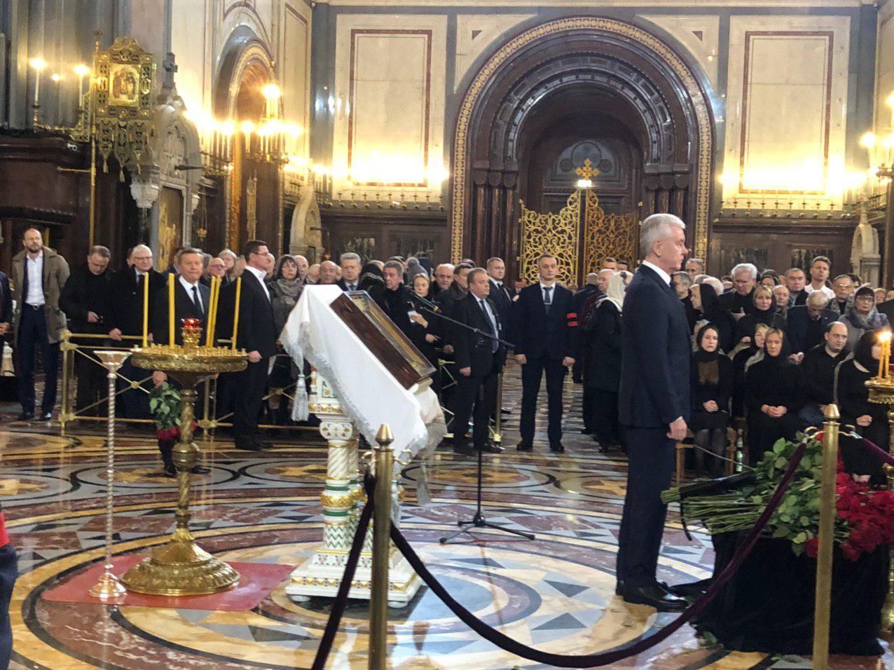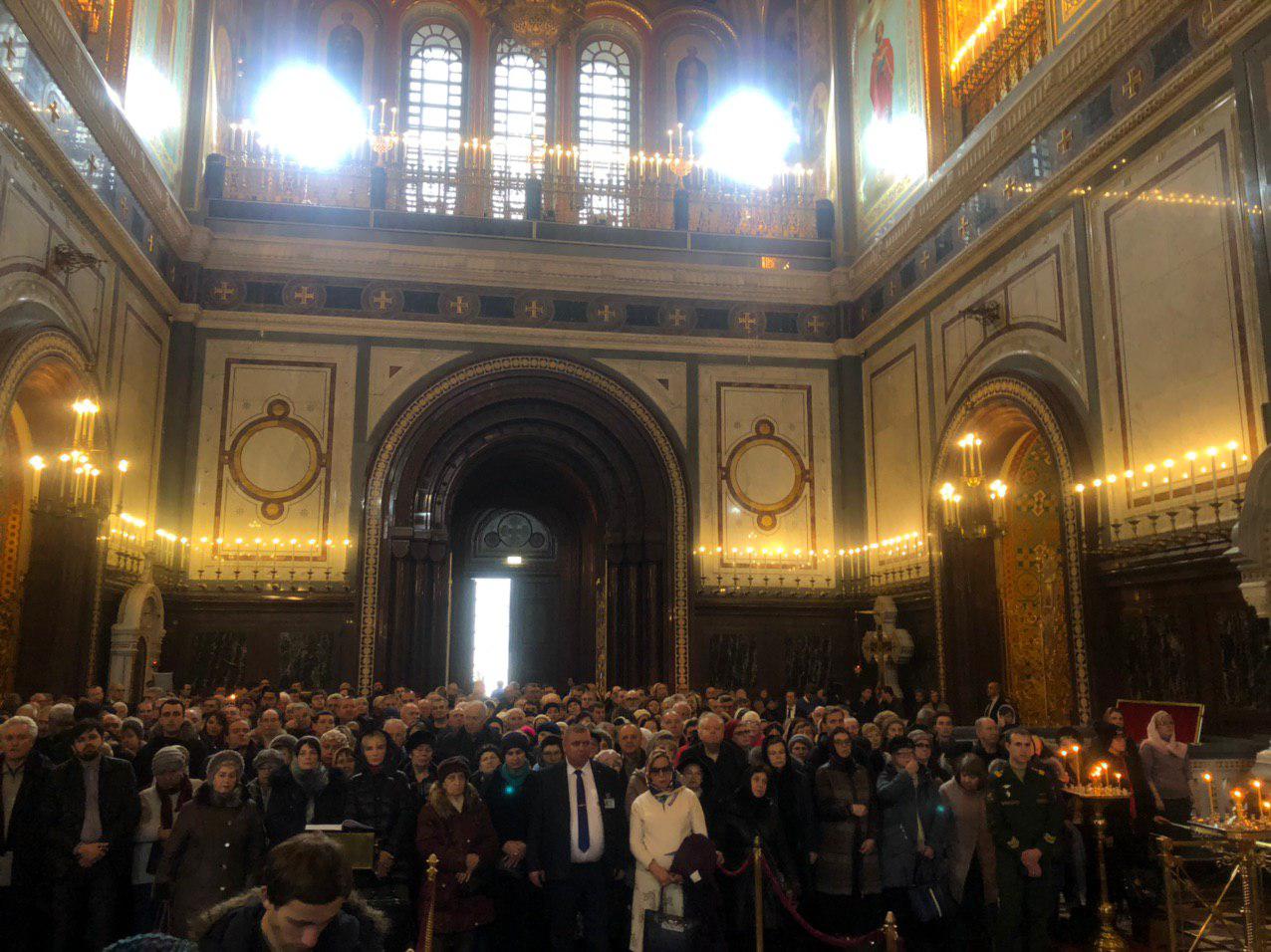 Церемония проходила в главном соборе России - Храме Христа Спасителя, который возвели при правлении Лужкова по его инициативе. Прощание началась в 7 утра по московскому времени и продолжится до 14:00. Столь раннее время объясняют тем, чтобы москвичи успели заехать в храм до начала работы.