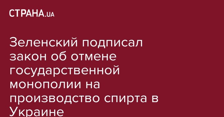 Президент Владимир Зеленский подписал законопроект №2300, который отменяет государственную монополию на производство спирта с 1 июля 2020 года. Документ возвращен с подписью президента, свидетельствует информация на сайте Верховной Рады в среду, 11 декабря.