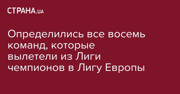 Определились все восемь команд, которые вылетели из Лиги чемпионов в Лигу Европы