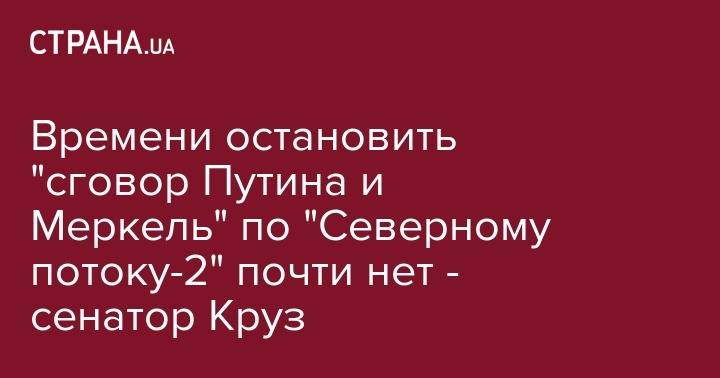 Времени остановить "сговор Путина и Меркель" по "Северному потоку-2" почти нет - сенатор Круз
