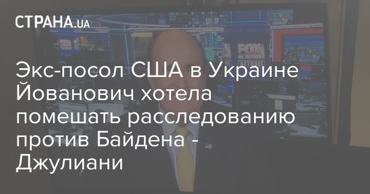 Адвокат президента США Руди Джулиани заявил, что бывший посол США в Украине Мари Йованович собиралась помешать получить данные по расследованию в отношении дел бывшего вице-президента Джо Байдена. Именно поэтому он считал своей задачей убрать ее с должности.