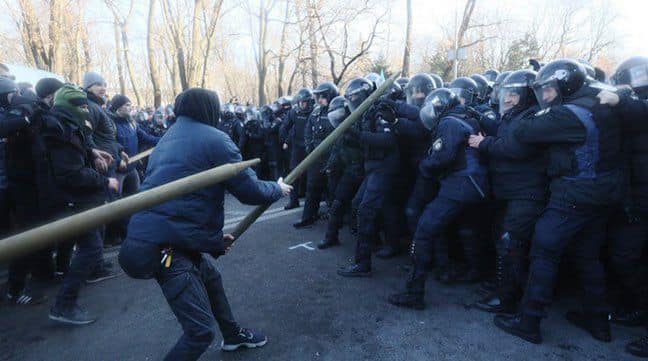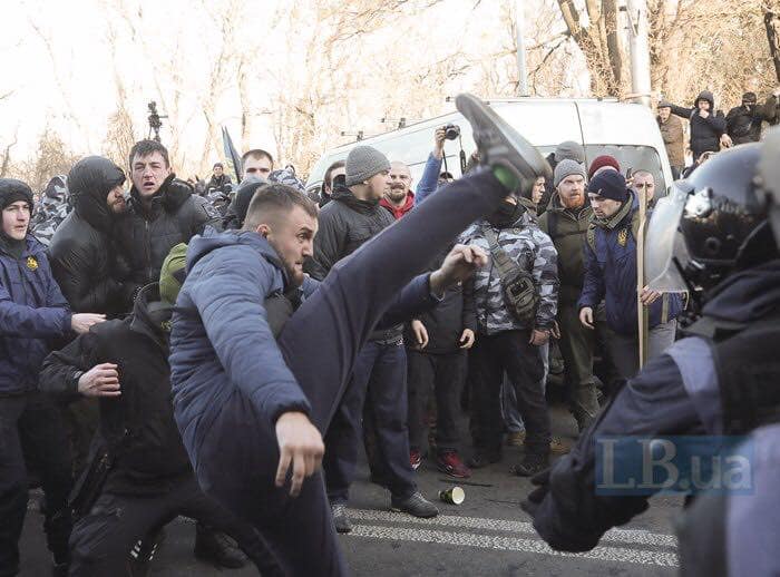 В Сети обсуждают фото националистов, дерущихся с полицией, и говорят, что они не похожи на аграриев.