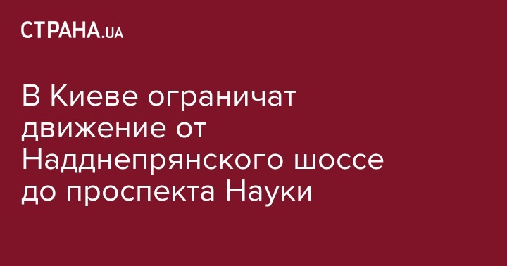 В Киеве ограничат движение от Надднепрянского шоссе до проспекта Науки