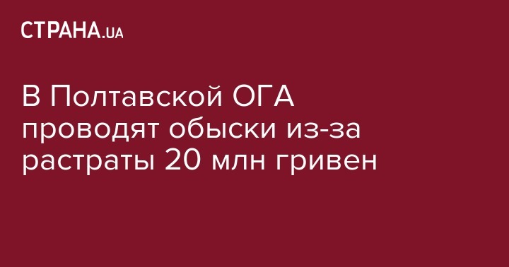 В Полтавской ОГА проводят обыски из-за растраты 20 млн гривен