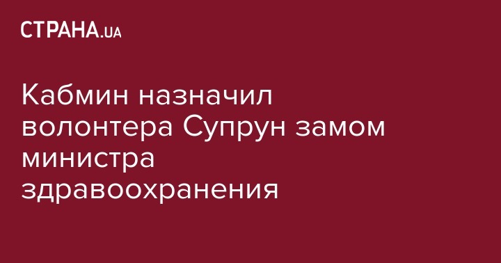 Кабмин утвердил кандидатуру Ульяны Супрун на должность заместителя министра здравоохранения Украины. Об этом сообщает "Интерфакс Украина".
