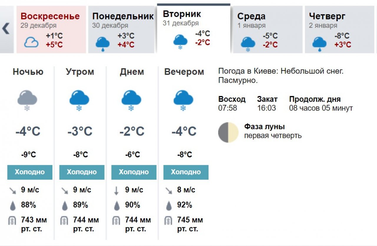Такая же температура перейдет и в новый год - 1 января ожидается от -2 до -5 градусов.