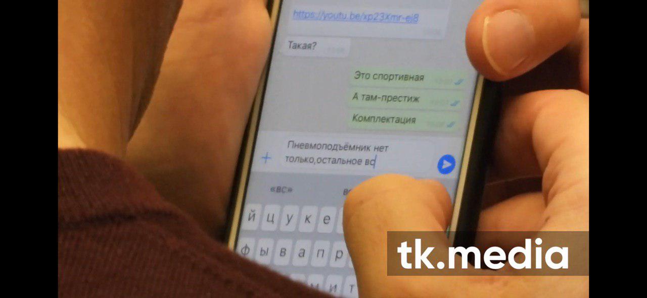 "Это спортивная. А там престиж-комплектация. Пневмоподъемника нет только, все остальное есть", - отвечает ей он.
