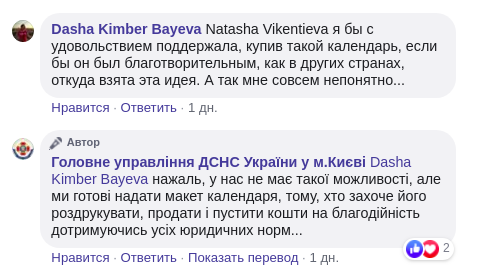 Пресс-служба ответила ей, что у них нет возможности напечатать и составить календари для продажи, но "мы готовы предоставить макет календаря, тому, кто захочет его распечатать, продать и пустить средства на благотворительность соблюдая все юридические нормы".