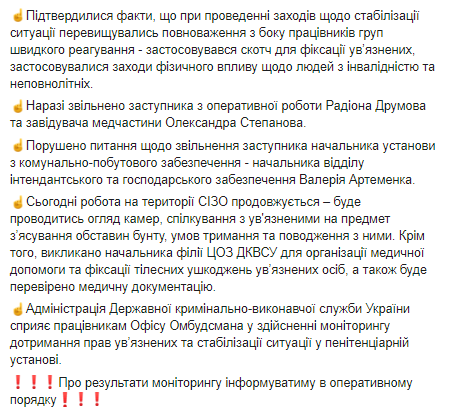 Бунт в Кропивницком СИЗО. Силовики применили спецсредства и скотч, двоих человек уволили - Денисова