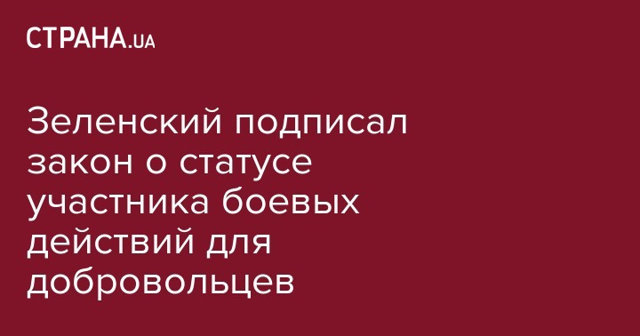 Президент Украины Владимир Зеленский подписал закон о предоставлении статуса участника боевых действий (УБД) бойцам добровольческих формирований. Об этом информирует пресс-служба Министерства по делам ветеранов, временно оккупированных территорий и ВПО.