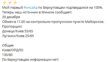 Однако предновогодний обмен - уже с "республиками", а не Россией. Он должен состяться уже завтра, 29 декабря.