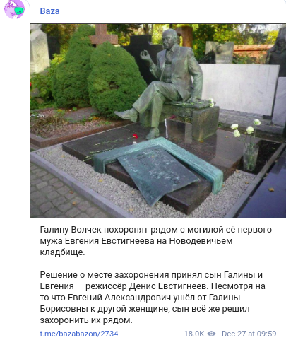 Однако, "Интерфакс" сообщает о том, что Волчек похоронят рядом с Марком Захаровым.