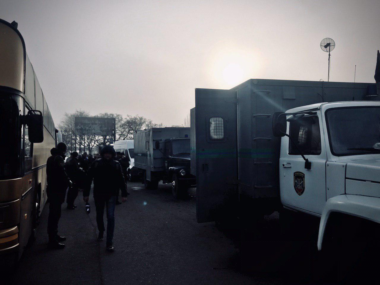 Мероприятие началось около 10 часов по киевскому времени. Представители "ДНР" привезли людей на обмен в автозаках.