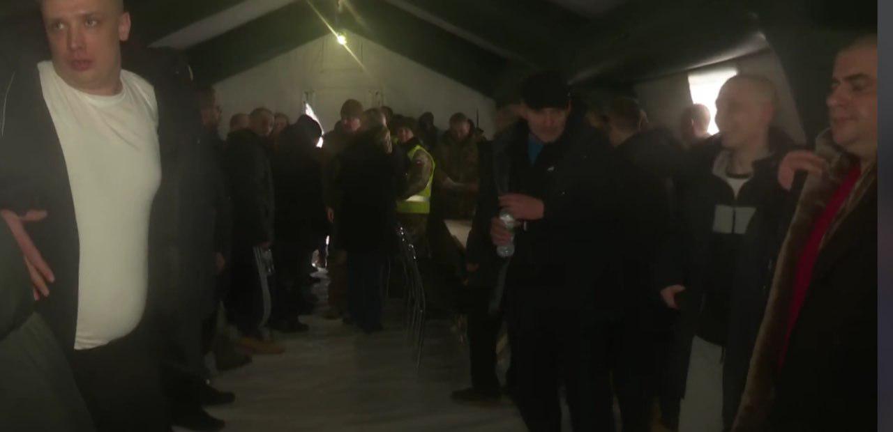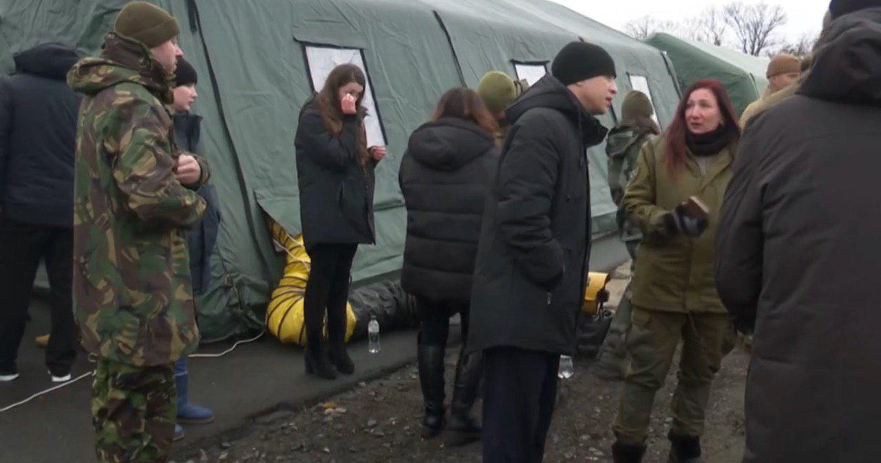 Для того, чтобы люди не мерзли, представители " МЧС ДНР" разбили огромные палатки. В них же проводилась верификация пленных, то есть установление личности граждан и подтверждение их готовности к обмену.