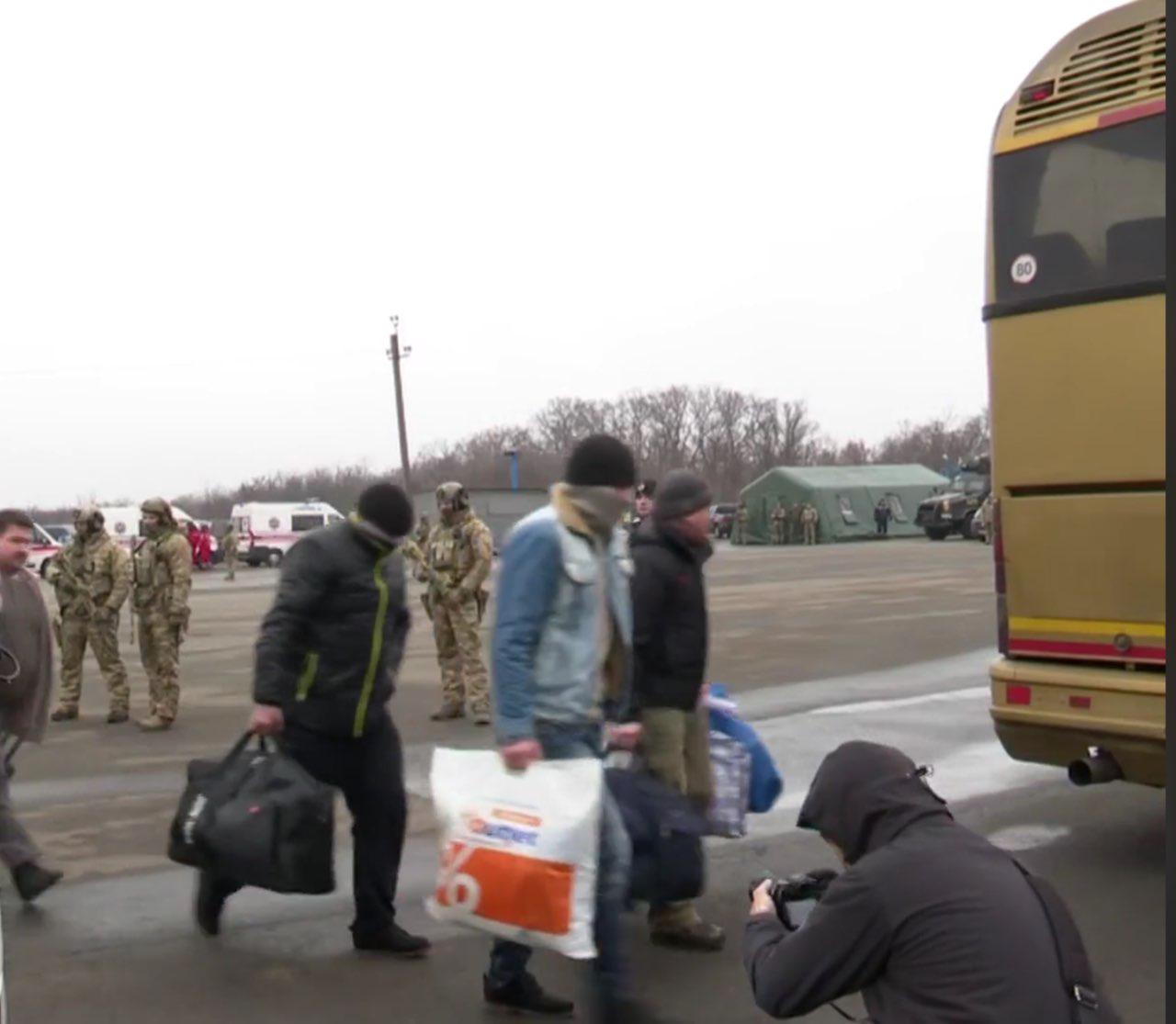 Люди, которых привезли на обмен, перемещались в сопровождении людей в форме. Одеты по-спортивно, чтобы было удобно в пути.
