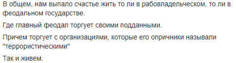 В общем, нам выпало счастье жить то ли в рабовладельческом, то ли в феодальном государстве.