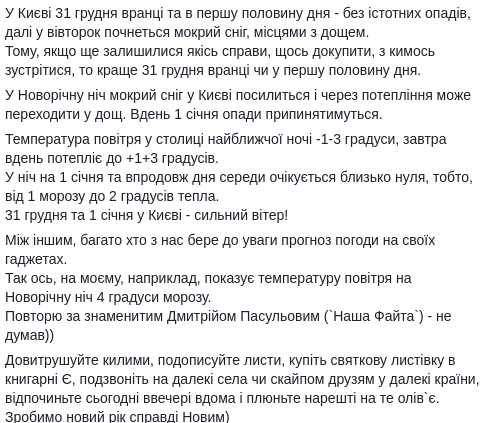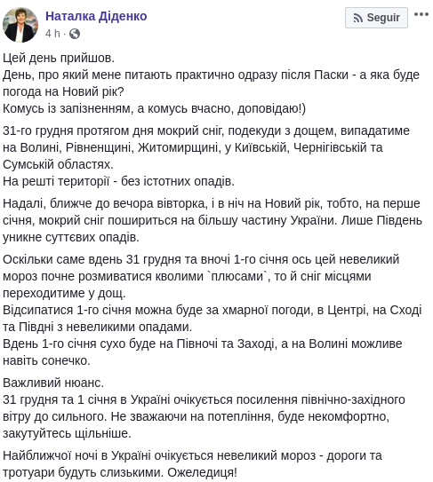 "Днем 1 января сухо будет на Севере и Западе, а на Волыни возможно даже солнышко. Важный нюанс.
