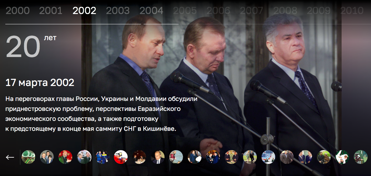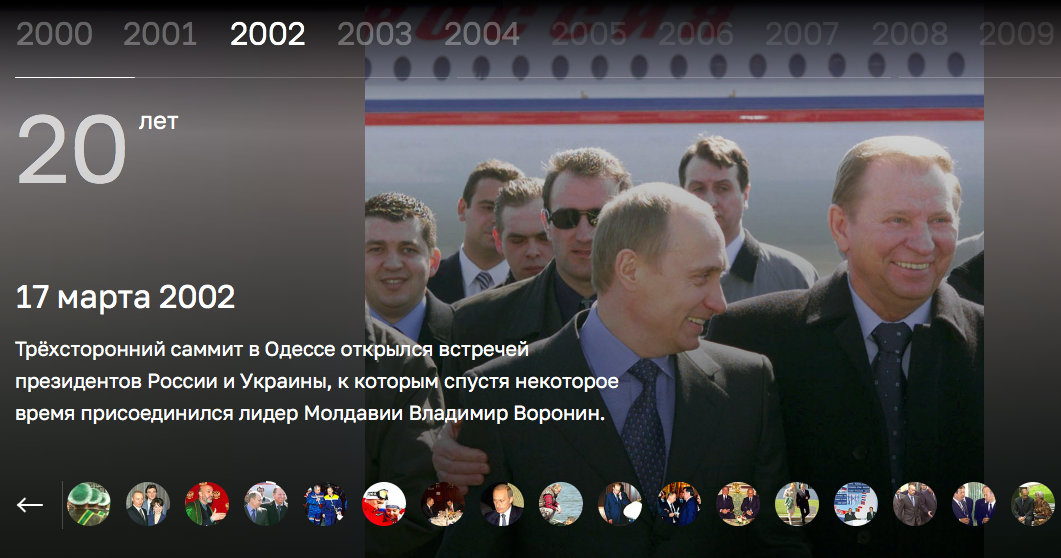 На момент подготовки материала опубликованы снимки с участием Владимира Путина в период с 2000 по 2004 год включительно.