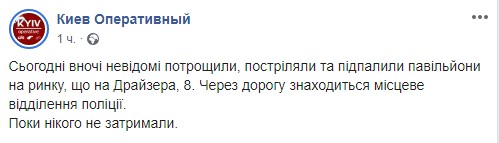 В ночь на 31 декабря в Киеве неизвестные напали и разгромили павильоны на рынке по улице Драйзера, 8. Об этом сообщает Киев Оперативной на своей странице в Facebook.