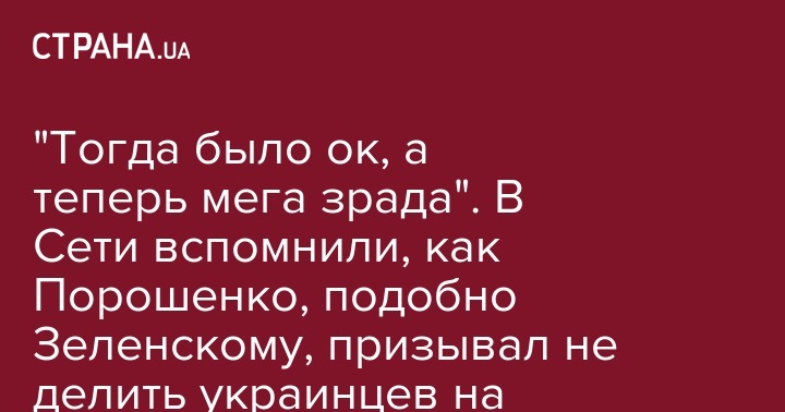 "Тогда было ок, а теперь мега зрада". В Сети вспомнили, как Порошенко, подобно Зеленскому, призывал не делить украинцев на правильных и неправильных