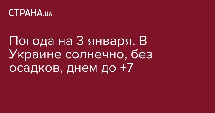 В пятницу, 3 января, в Украине будет без осадков, днем до +7, ночью местами похолодает до -5 градусов. Об этом сообщает сайт Укргидрометцентра.