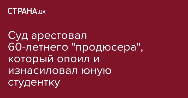 Суд арестовал 60-летнего мужчину, который опоил и изнасиловал 18-летнюю студентку, представившись продюсером. Об этом сообщает пресс-служба прокуратуры Киева.