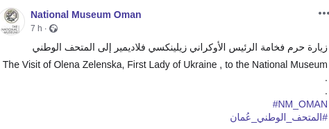 Первая леди Украины, Елена Зеленская посетила Национальный музей Омана во время пребывания на отдыхе с семьей. Об этом сообщает пресс-служба Национального музея страны на Facebook.