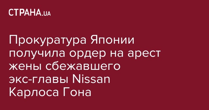 Прокуратура Токио получила ордер на арест жены бывшего главы автоконцерна Nissan Карлоса Гона Кароль Гон, передает ТАСС.