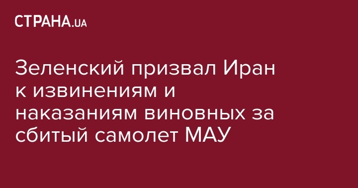 Зеленский призвал Иран к извинениям и наказаниям виновных за сбитый самолет МАУ
