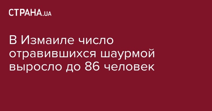 Как сообщала "Страна", 20 июля в инфекционную больницу Измаила попал 41 человек, в том числе 9 детей, с симптомами пищевой токсикоинфекции и острой кишечной инфекции. Все пострадавшие ели шаурму в фаст-фуде на одной из центральных улиц города – проспекте Суворова.