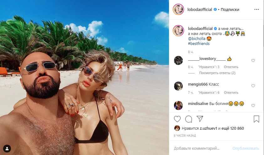 Известная украинская певица Светлана Лобода, которая поздравила поклонников с Новым годом верхом на лошади, опубликовала фото в обнимку с бородатым мужчиной. Иллюстрации она разместила на своей странице в Instagram.