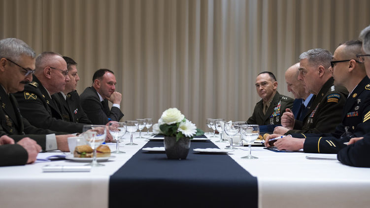 Начальник Генерального штаба Украины генерал-лейтенант Руслан Хомчак встретился в Брюсселе с главой Объединенного комитета начальников штабов США генералом Марком Милли.