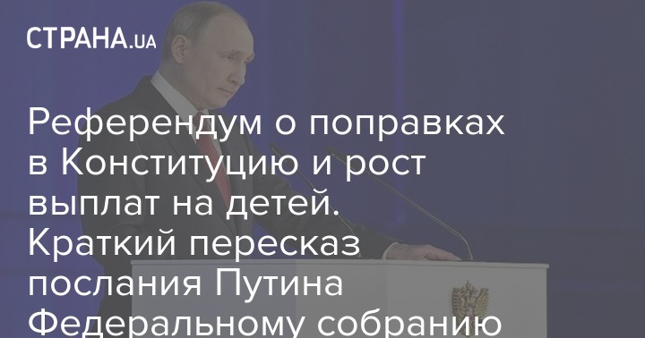 Референдум о поправках в Конституцию и рост выплат на детей. Краткий пересказ послания Путина Федеральному собранию