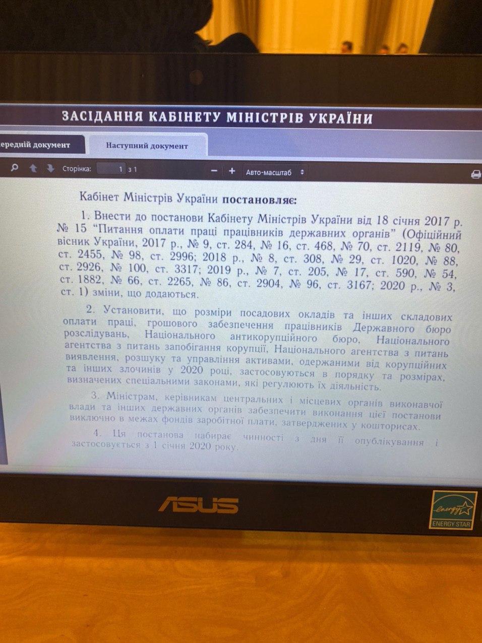Во время заседания Кабинета министров в правительстве решили отказаться от практики установления больших заработных плат, а их размер решили привязать к суммам в гривне, а не к различным коэффициентам. Об этом сообщается в Telegram-канале нардепа Алексея Гончаренко.