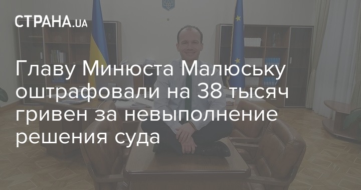 В Окружном административном суде Киева оштрафовали главу Минюста Дениса Малюську на 38 420 гривен за невыполнение решения суда. Об этом говорится в материалах суда, передают "Украинские Новости".