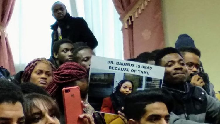Как уточняет СМИ, Бадмус не сдала экзамен по педиатрии с третьей, то есть последней попытки, и была представлена на отчисления из вуза. Из-за этого студенты и собрались в актовом зале медуниверситета им. Горбачевского. Некоторые из них держали в руках плакат с текстом "DR. Badmus is dead because of TDMU" ("Доктор Бадмус мертвая из-за ТГМУ"- Ред.). Их требования были: меньшее количество вопросов не столь сильная жесткость на экзаменах, уменьшение количества членов комиссии, а также возможность сдавать экзамен более трех раз.