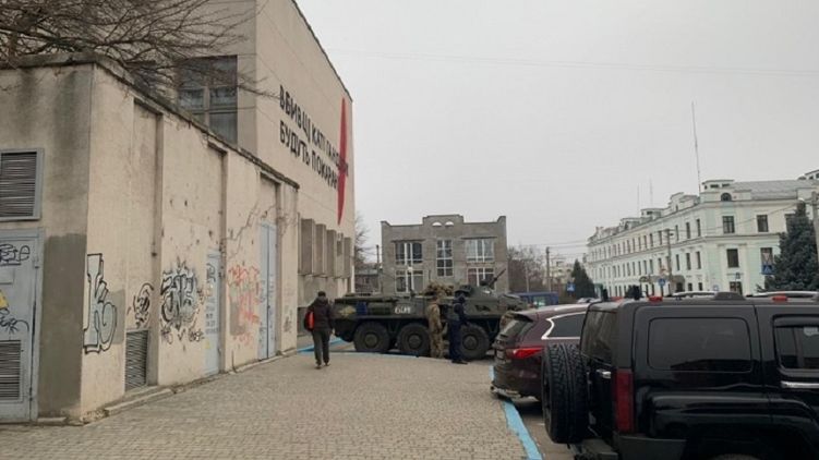 В Херсоне обыски проходят с использованием БТР. Фото: gp.gov.ua