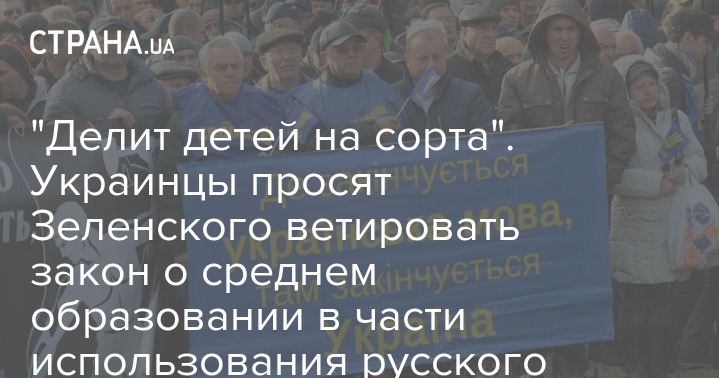 "Делит детей на сорта". Украинцы просят Зеленского ветировать закон о среднем образовании в части использования русского языка