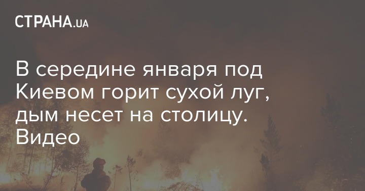 В середине января под Киевом горит сухой луг, дым несет на столицу. Видео