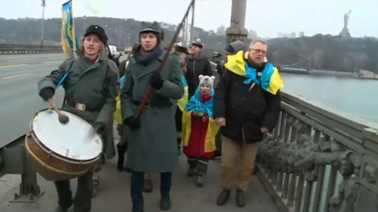 Сегодня, 22 января, по случаю празднования Дня Соборности Украины, десятки людей в Киеве традиционно образовали живую цепь на мосту Патона. Так, уже с 08.00 люди начали двигаться навстречу друг другу двумя колоннами. Данное действо символизириует объединение Западно-украинской народной республики (ЗУНР) и Украинской народной республики (УНР) 22 января 1919 года.